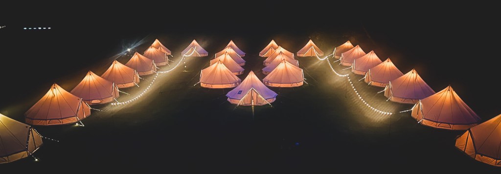 Wild Willy Cabins works with Bellorama Bell Tent Hire, offering comprehensive glamping villages for festivals and retreats in nature.